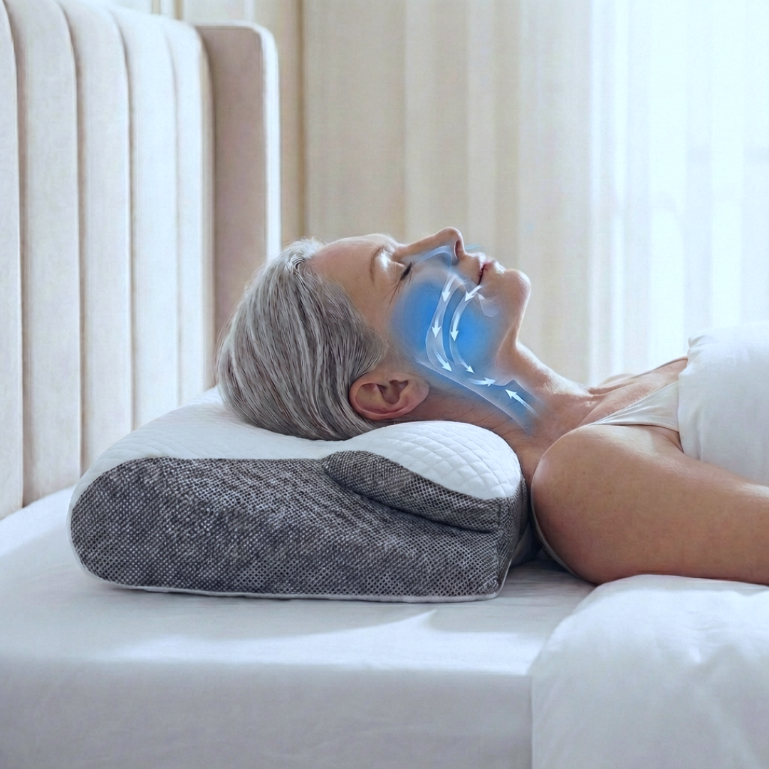 L'oreiller maintient votre tête et votre nuque dans un alignement naturel qui libère vos voies respiratoires. Il facilite ainsi le passage de l'air et réduit les ronflements.