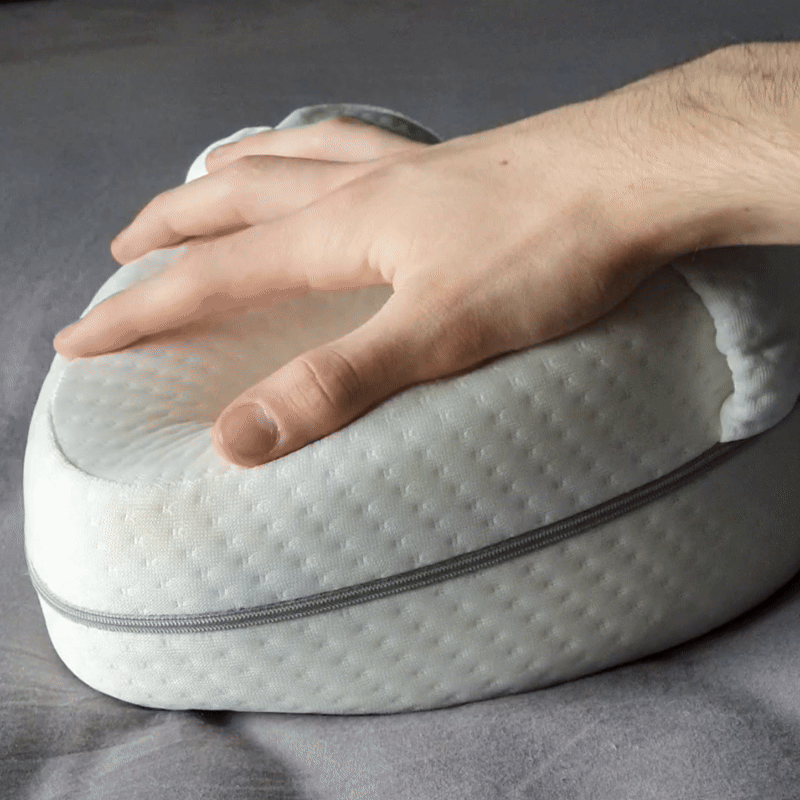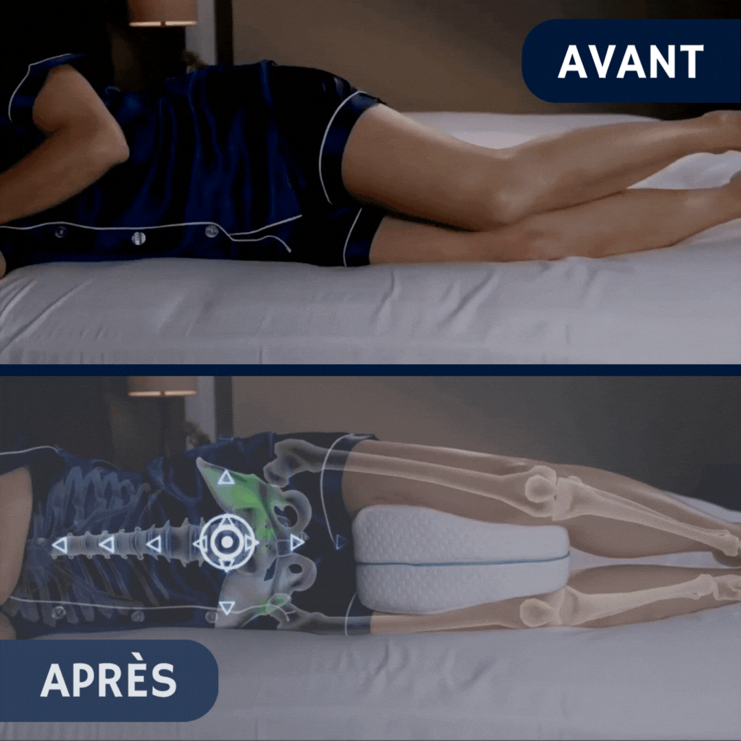 Unser ergonomisches Kissen stützt Ihre Beine im Schlaf und reduziert so Verspannungen durch die natürliche Ausrichtung Ihrer Wirbelsäule.